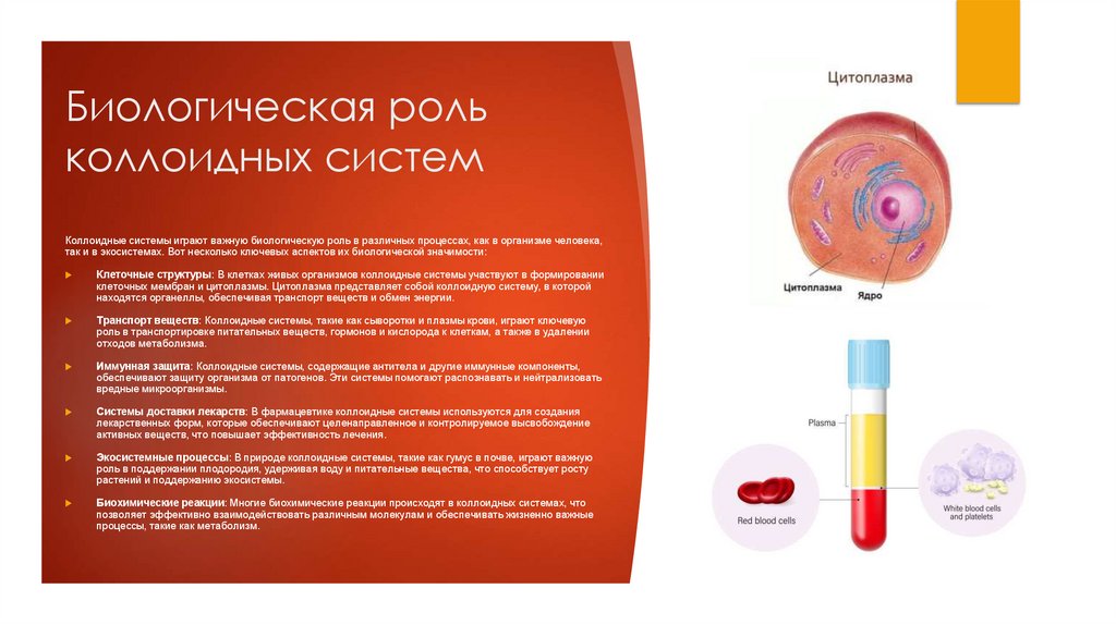 Коллоидные системы играют важную биологическую роль в различных процессах, как в организме человека,