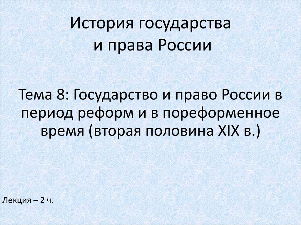 Тема 8: Государство и право России впериод реформ и в пореформенное