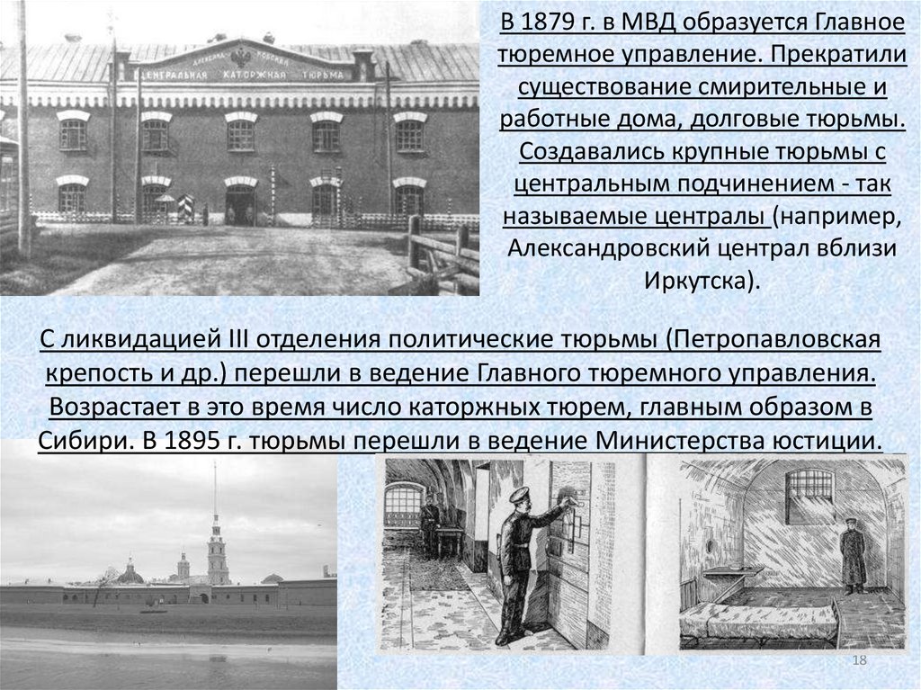 К 1895 г. в соответствии с указанным законом в России былопостроено 59 новых тюрем, семь из них были рассчитаны на