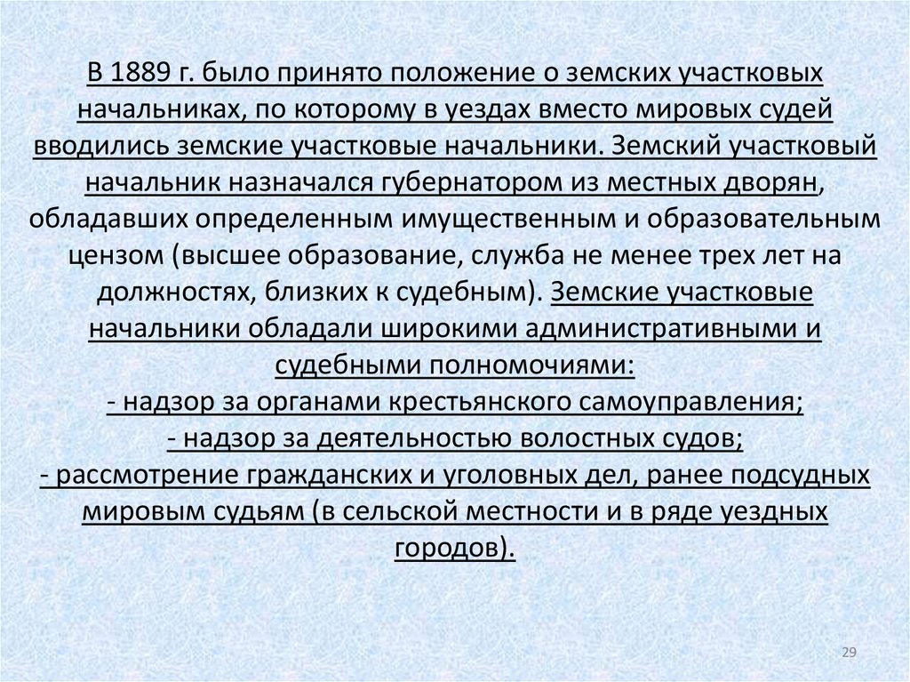 В 1889 г. был издан переселенческий закон, по которому крестьянским