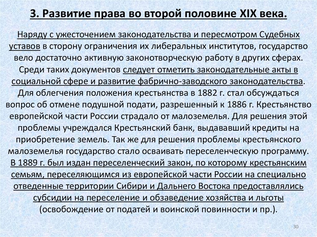 Из законодательных актов, имевших общеимперское значение, следует отметить
