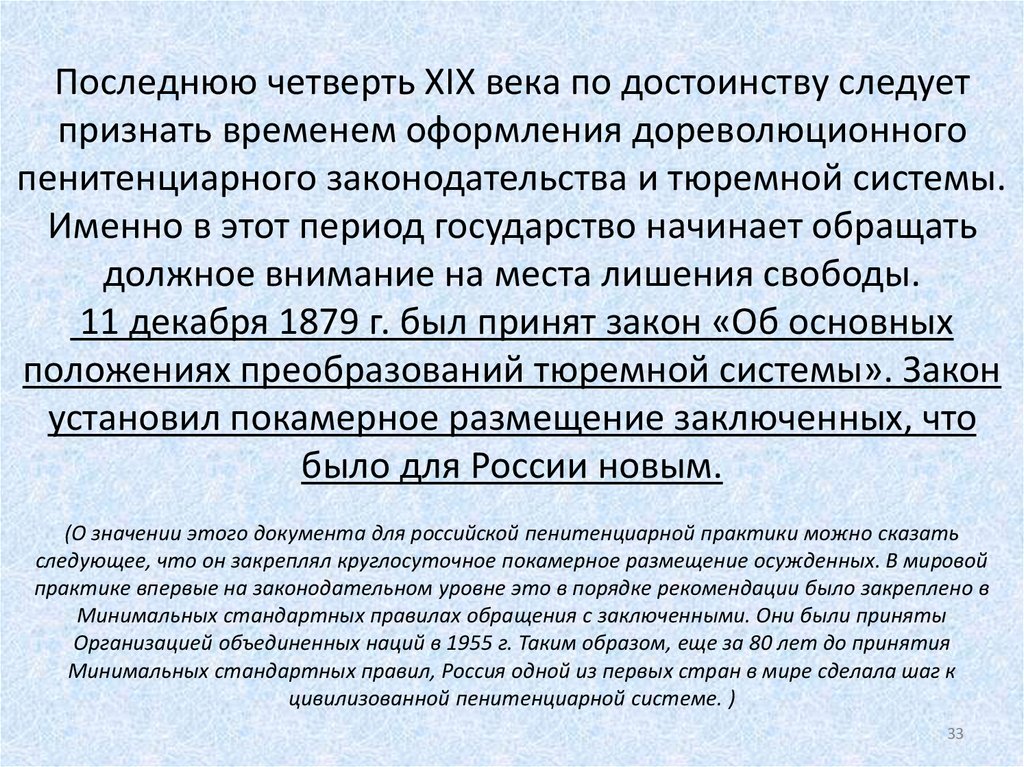 33. Последнюю четверть XIX века по достоинству следует признать временем оформления дореволюционного пенитенциарного