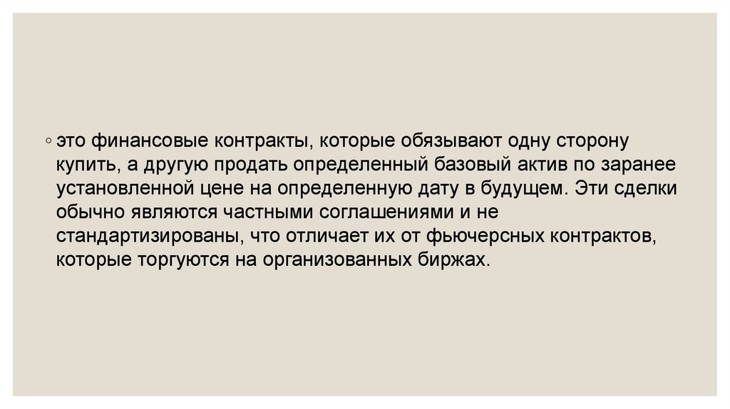 стандартизированы, что отличает их от фьючерсных контрактов,