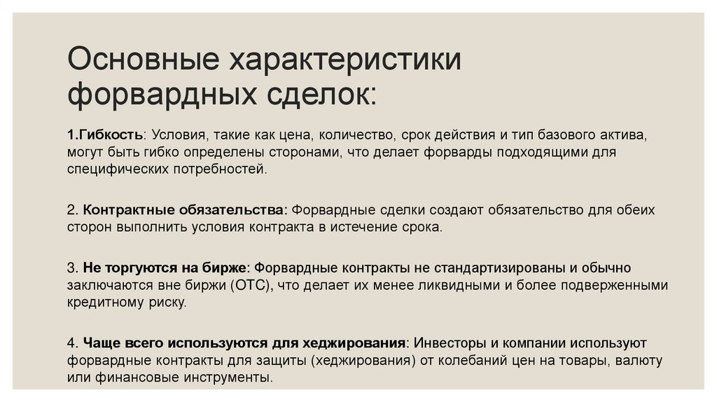 3. Не торгуются на бирже: Форвардные контракты не стандартизированы и обычно