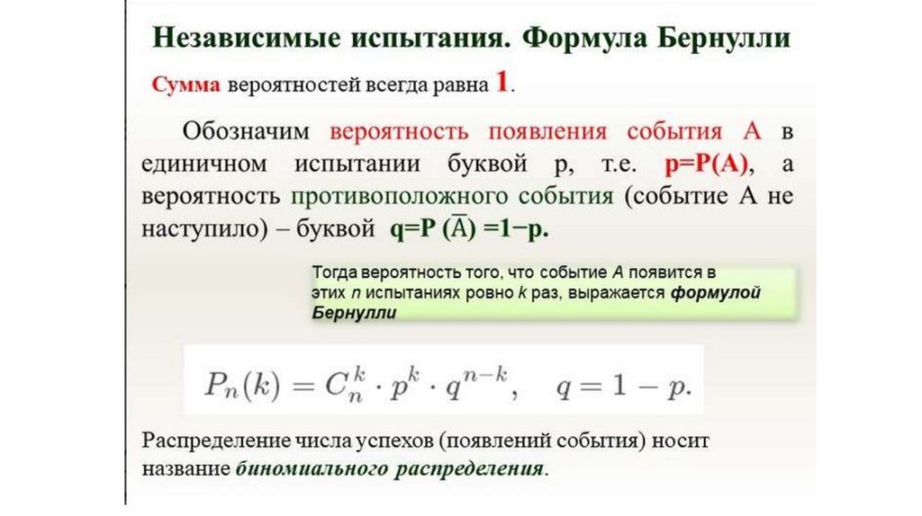 Теория вероятностей. Успех и неудача.Число успехов в испытаниях Бернулли
