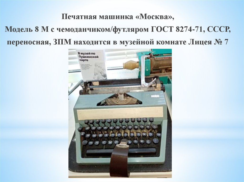 переносная, ЗПМ находится в музейной комнате Лицея № 7