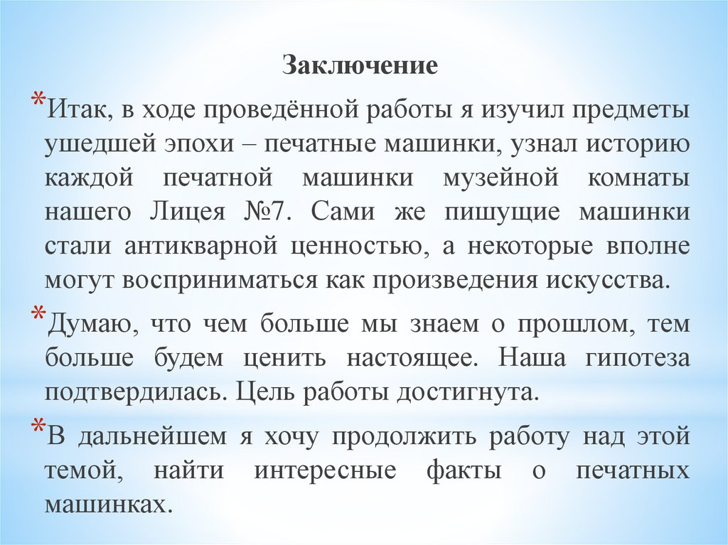 Заключение*Итак, в ходе проведённой работы я изучил предметы