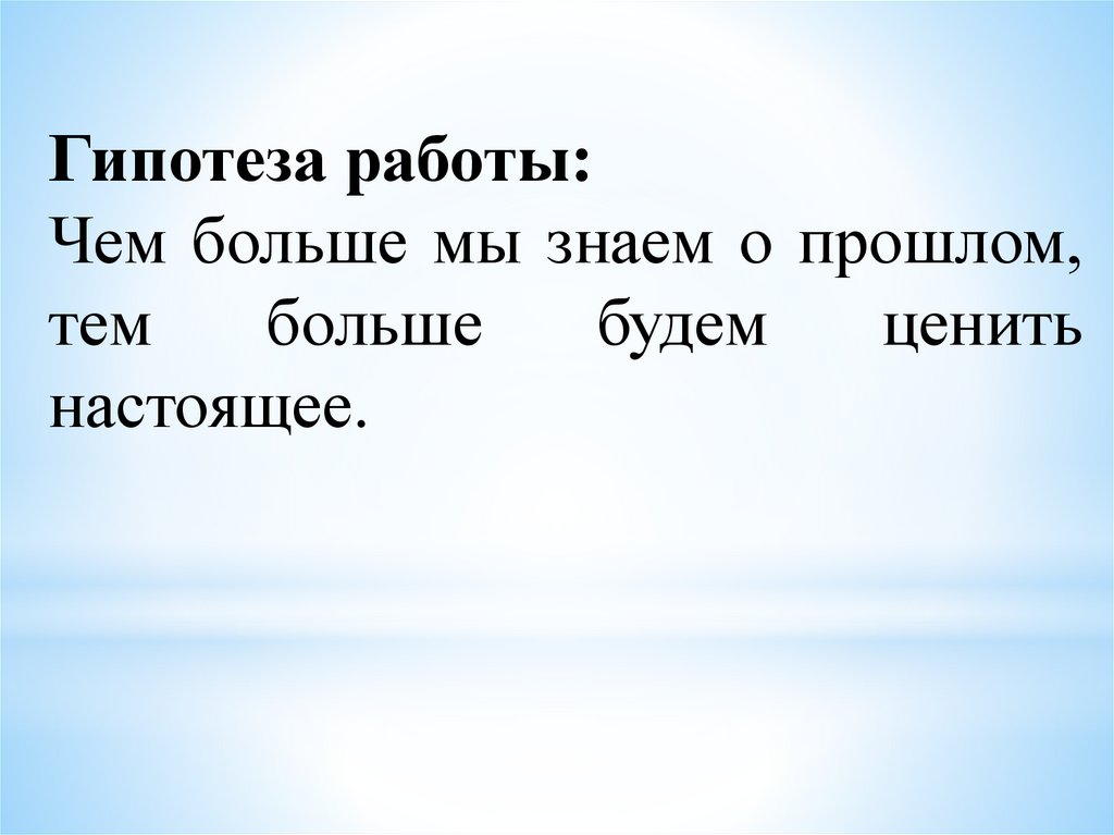 Гипотеза работы:Чем больше мы знаем о прошлом,