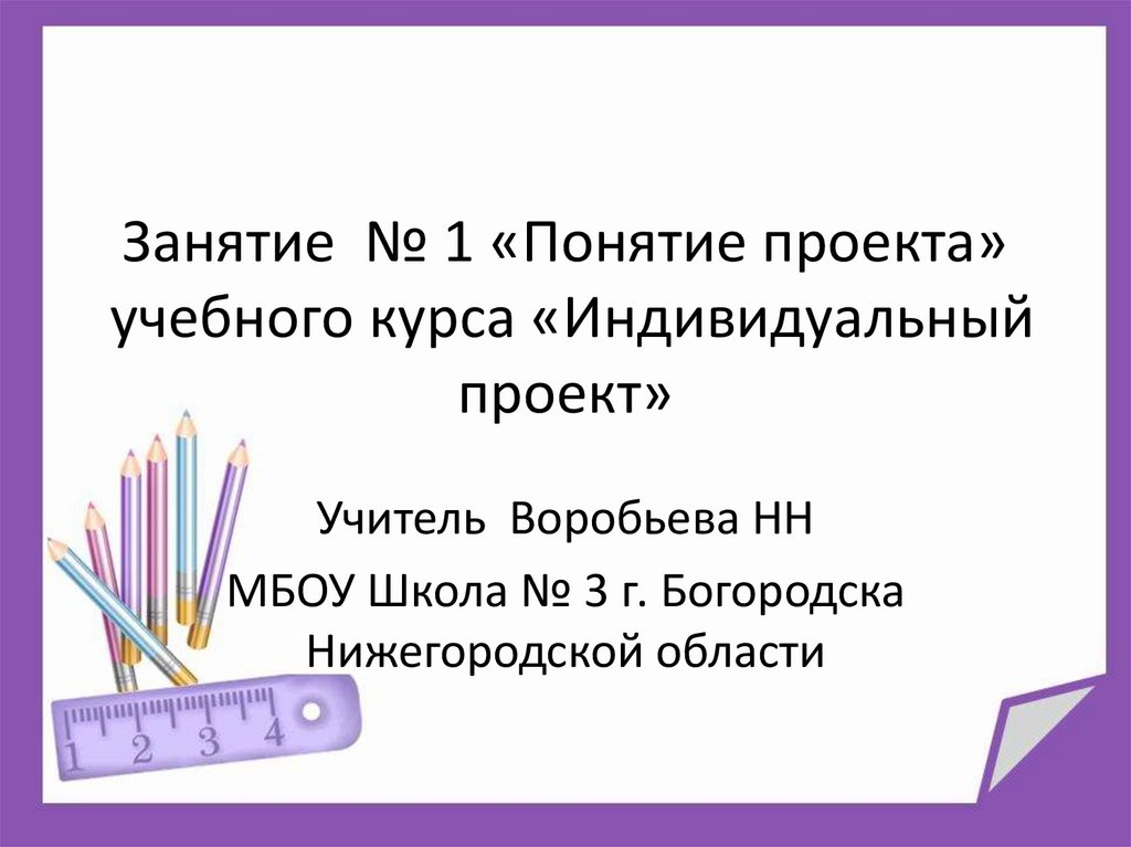 Занятие № 1 «Понятие проекта»учебного курса «Индивидуальный