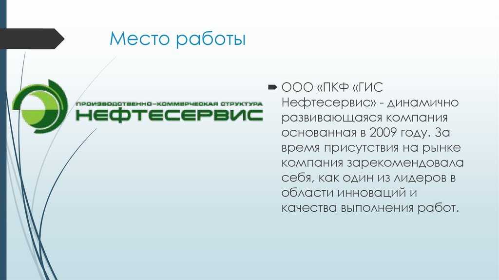 Я - профессионал. Место работы ООО «ПКФ «ГИС Нефтесервис»