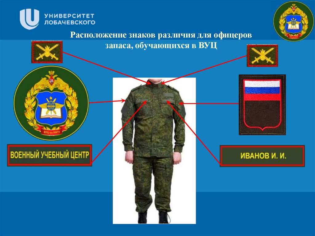 Расположение знаков различия для офицеровзапаса, обучающихся в ВУЦ