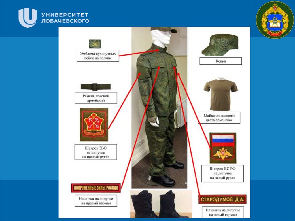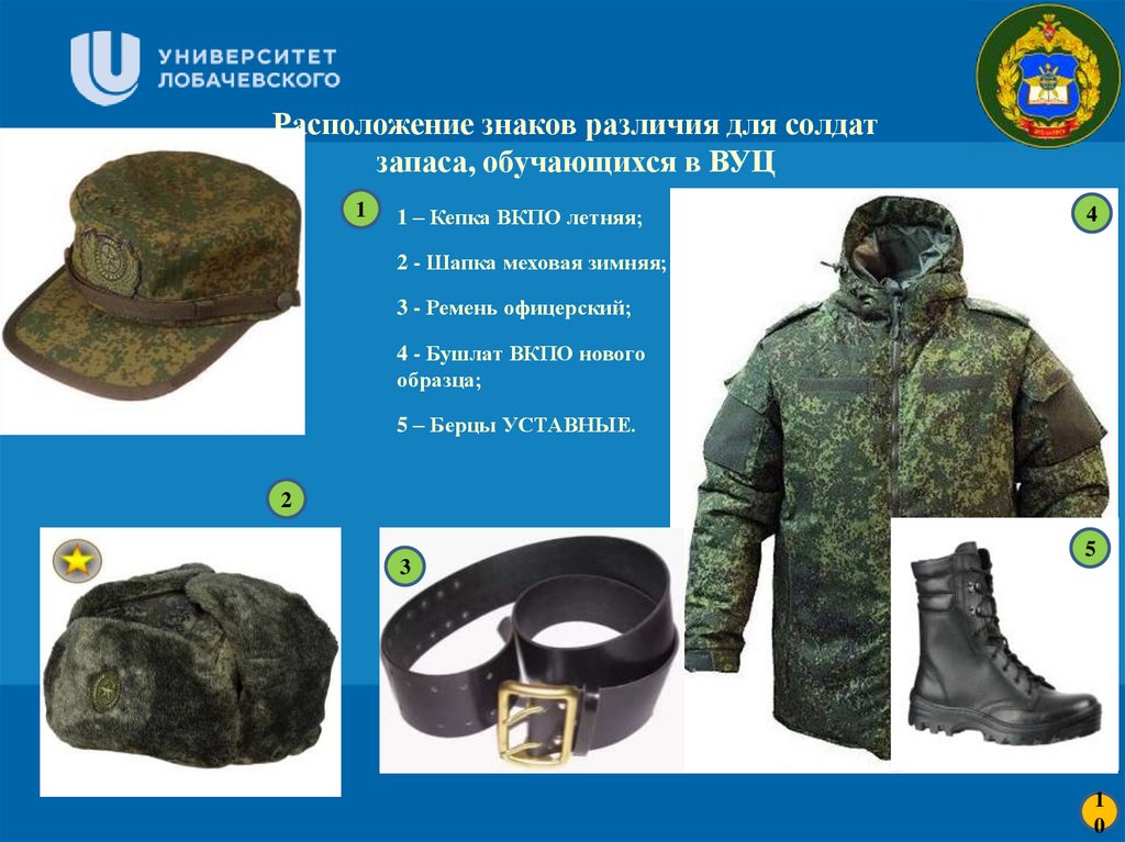Расположение знаков различия для солдатзапаса, обучающихся в ВУЦ