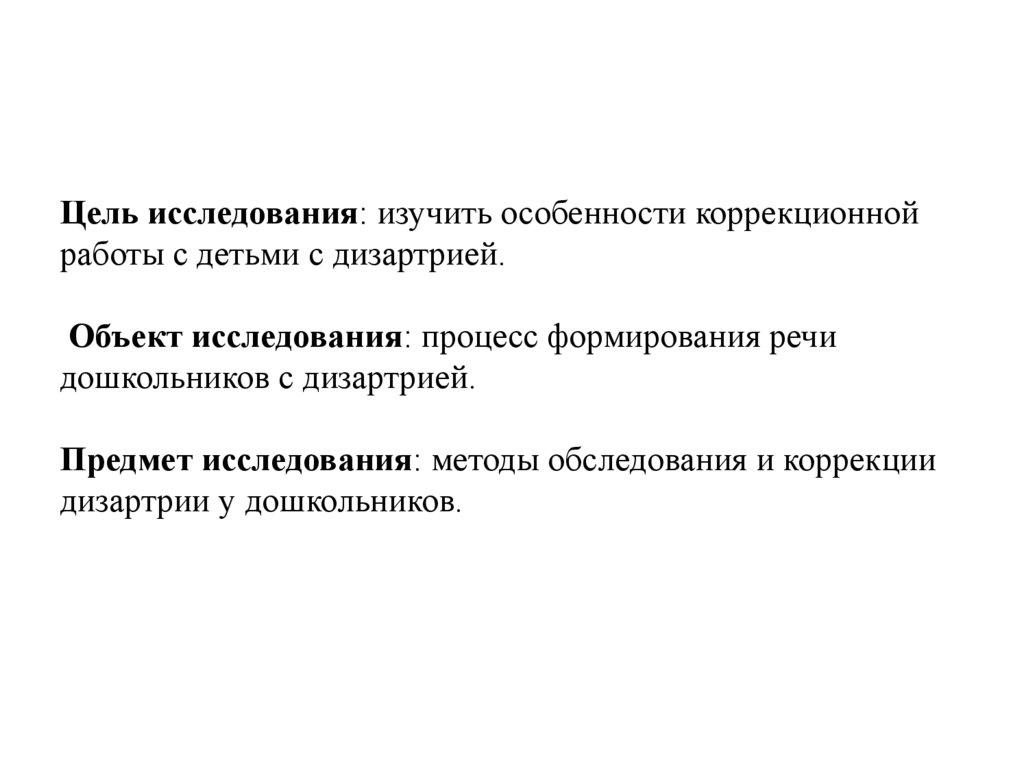 Цель исследования: изучить особенности коррекционнойработы с детьми с дизартрией.