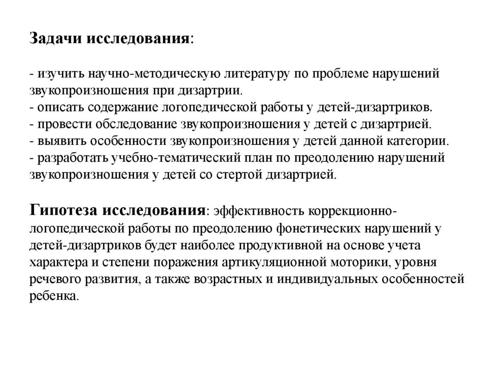 Гипотеза исследования: эффективность коррекционнологопедической работы по преодолению фонетических нарушений у