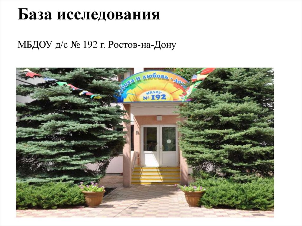 База исследованияМБДОУ д/с № 192 г. Ростов-на-Дону