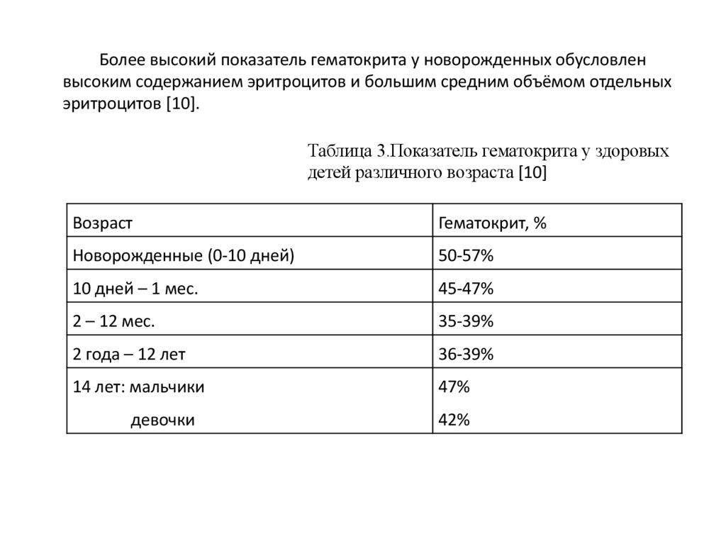 Более высокий показатель гематокрита у новорожденных обусловленвысоким содержанием эритроцитов и большим средним объёмом отдельных