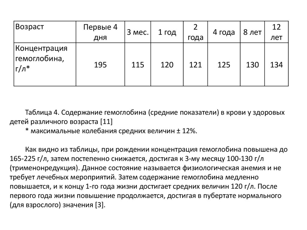 таблице 2 [9, 10]. Данные показатели зависят от количества эритроцитов,