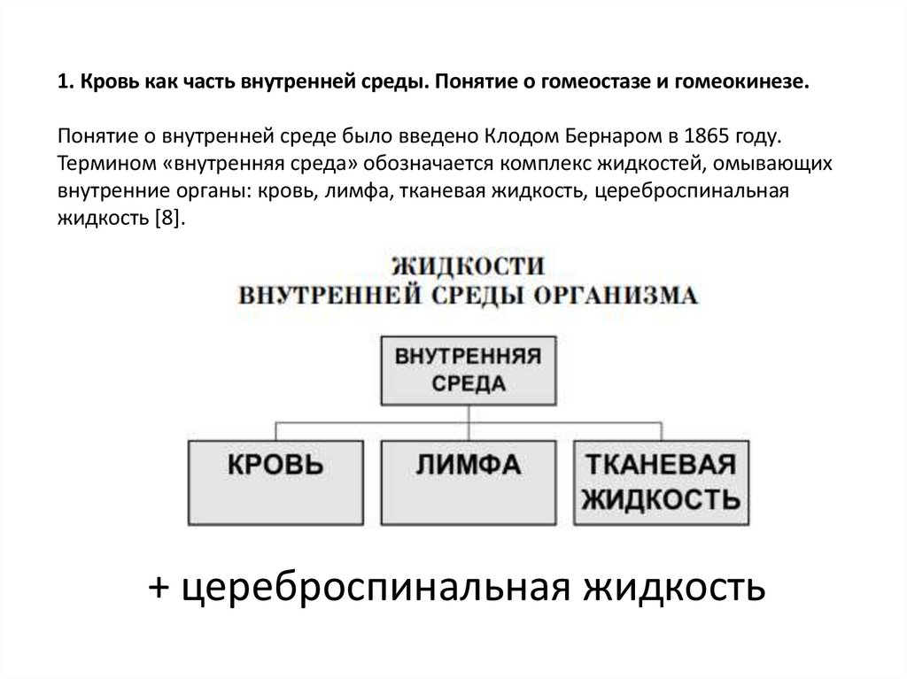 1. Кровь как часть внутренней среды. Понятие о гомеостазе и гомеокинезе.Понятие о внутренней среде было введено Клодом Бернаром в 1865 году.