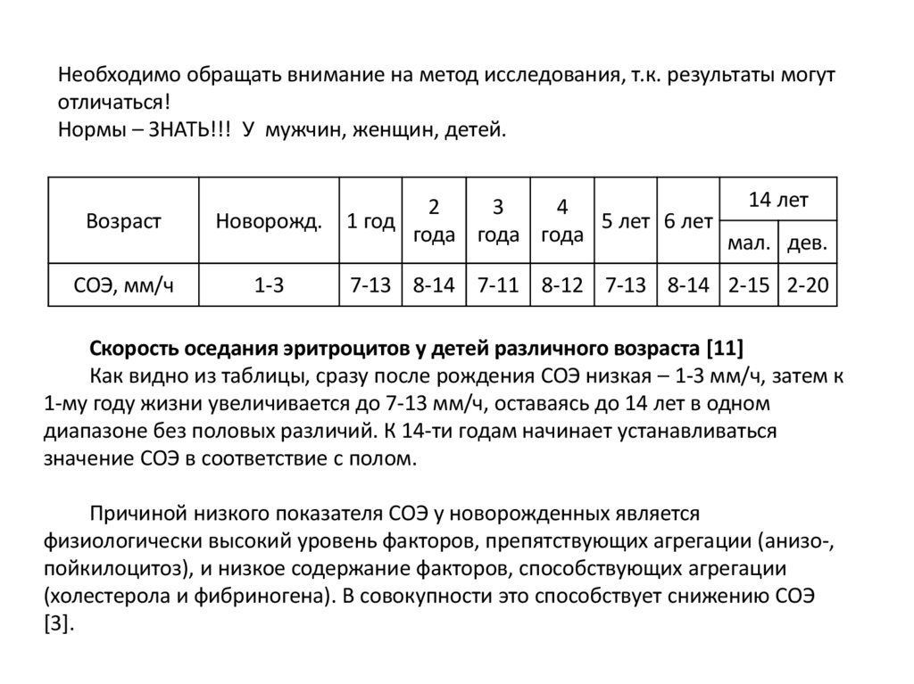 1-му году жизни увеличивается до 7-13 мм/ч, оставаясь до 14 лет в одном
