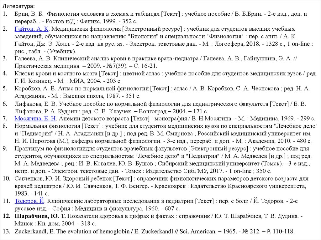 7. Мосягина, Е. Н. Анемии детского возраста [Текст] : монография / Е. Н.Мосягина. - М. : Медицина, 1969. - 299 с.