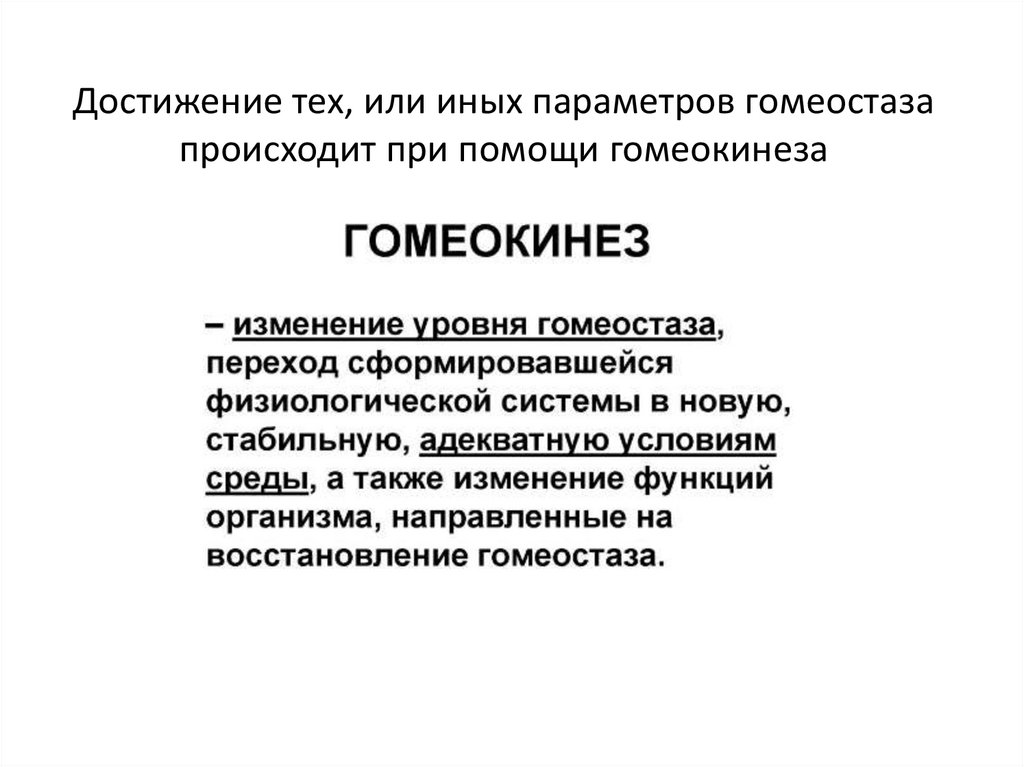 Достижение тех, или иных параметров гомеостазапроисходит при помощи гомеокинеза