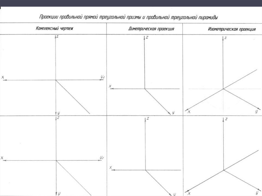 6. Построение комплексного чертежа правильной прямой треугольной пирамиды