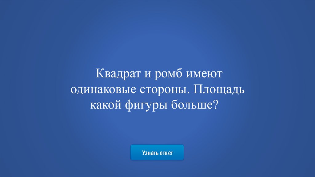 Квадрат и ромб имеютодинаковые стороны. Площадь