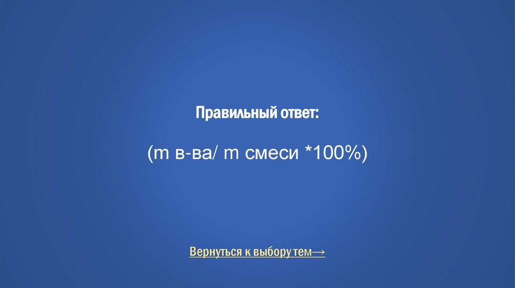 Правильный ответ:(m в-ва/ m смеси *100%)
