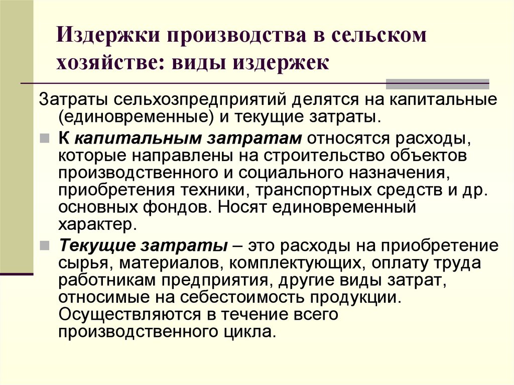 2. Издержки производства в сельском хозяйстве: виды издержек