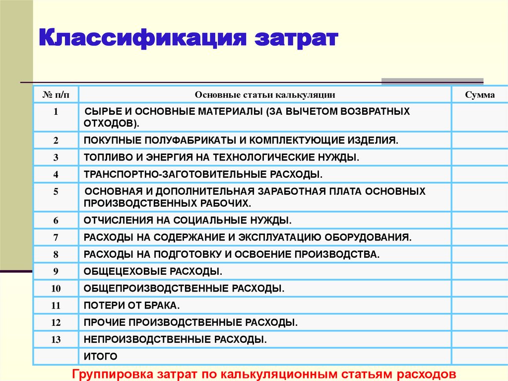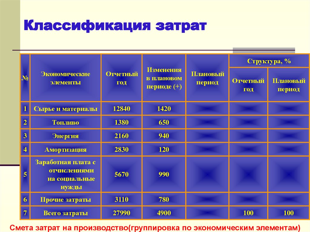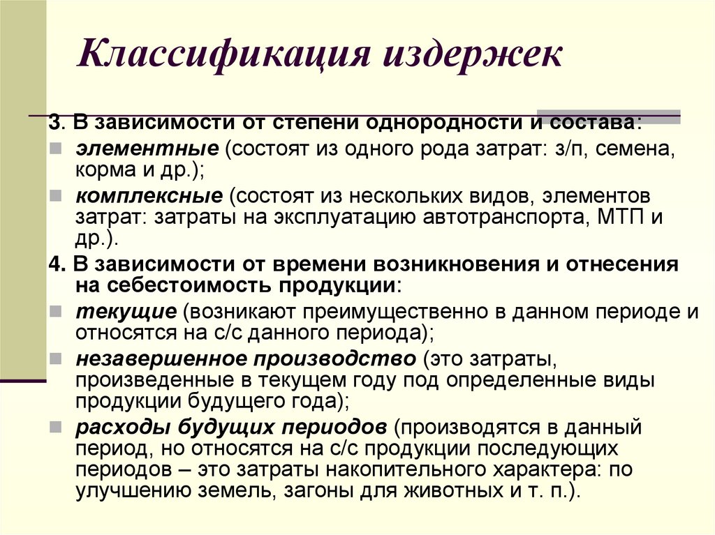 3. В зависимости от степени однородности и состава:элементные (состоят из одного рода затрат: з/п, семена,