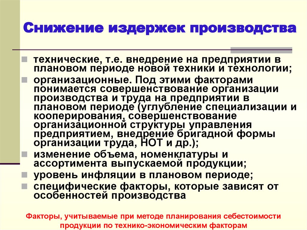 технические, т.е. внедрение на предприятии вплановом периоде новой техники и технологии;