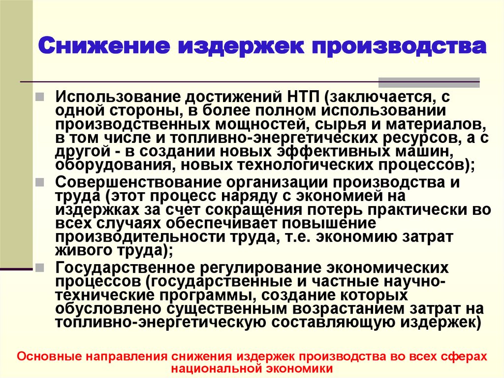 Использование достижений НТП (заключается, содной стороны, в более полном использовании