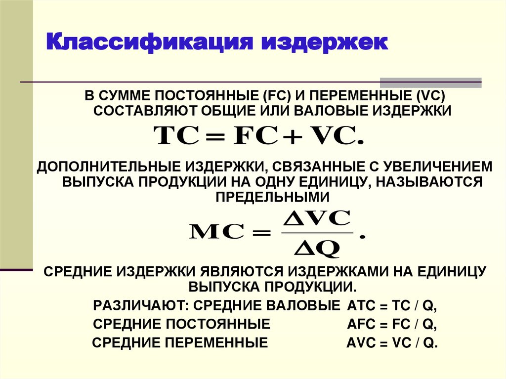 РАЗЛИЧАЮТ: СРЕДНИЕ ВАЛОВЫЕ ATC = TC / Q,
