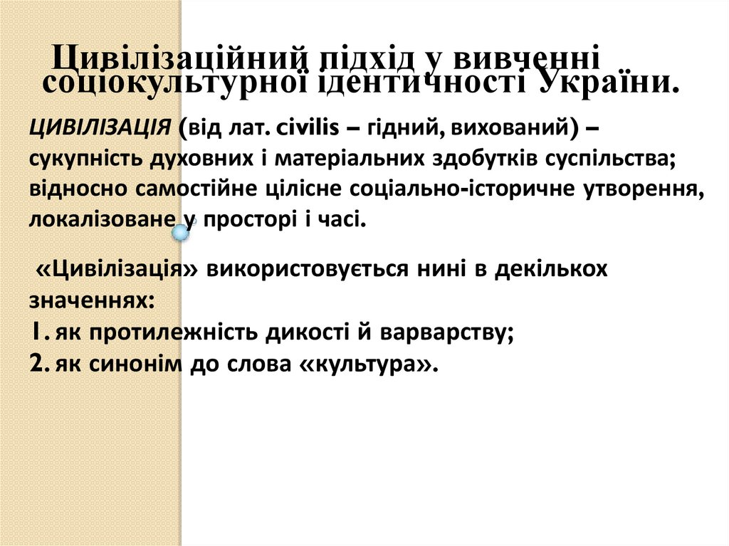 Цивілізаційний підхід у вивченнісоціокультурної ідентичності України.