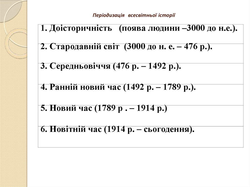 Періодизація всесвітньої історії1. Доісторичність (поява людини –3000 до н.е.).