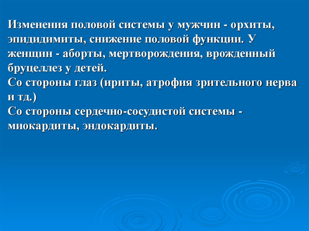 Изменения половой системы у мужчин - орхиты,эпидидимиты, снижение половой функции. У