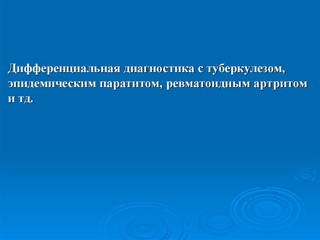 Дифференциальная диагностика с туберкулезом,эпидемическим паратитом, ревматоидным артритом