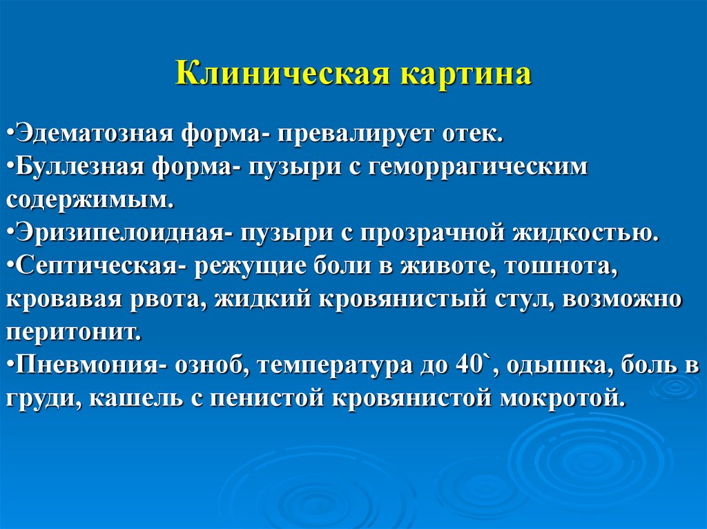 Клиническая картина•Эдематозная форма- превалирует отек.