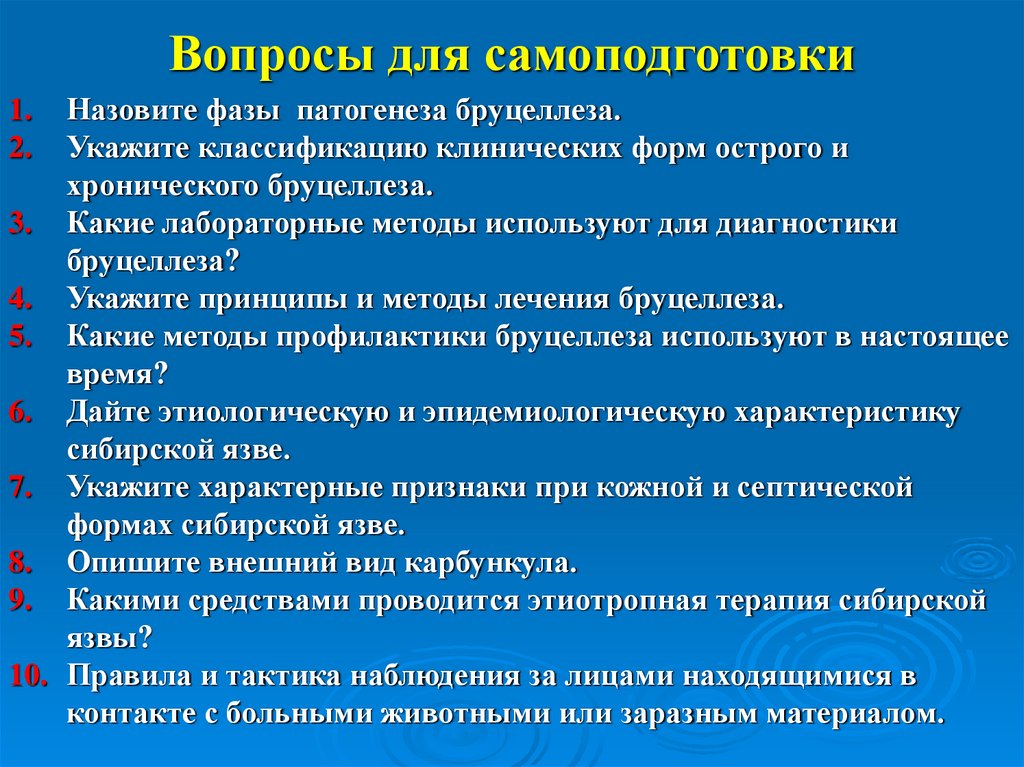 Вопросы для самоподготовкиНазовите фазы патогенеза бруцеллеза.