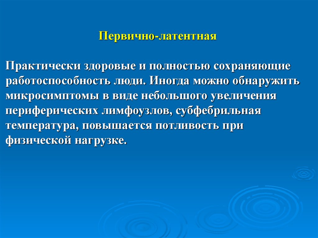Первично-латентнаяПрактически здоровые и полностью сохраняющие