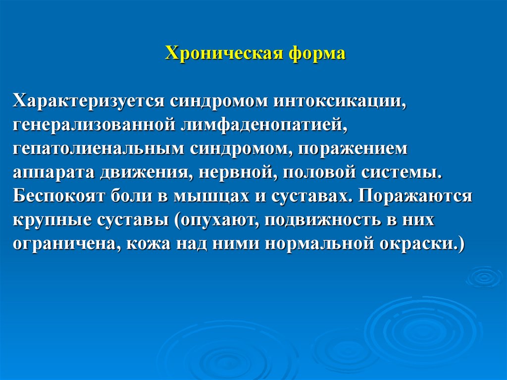 Хроническая формаХарактеризуется синдромом интоксикации,