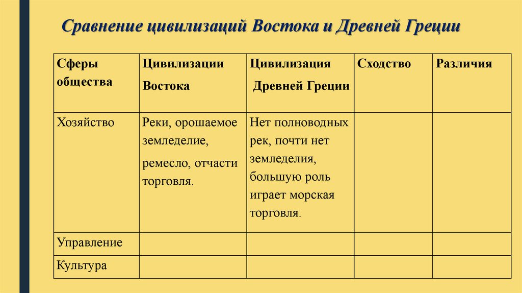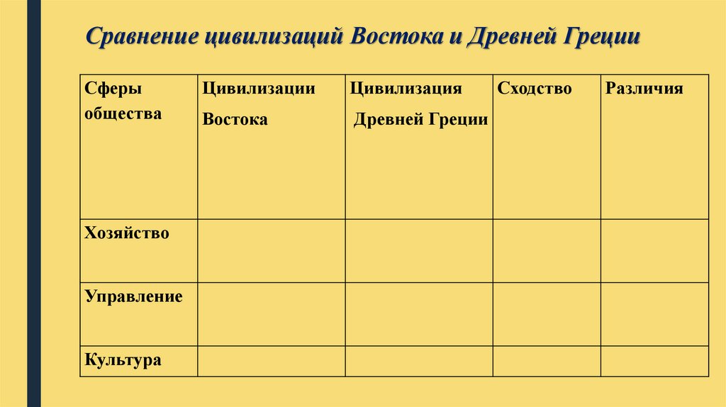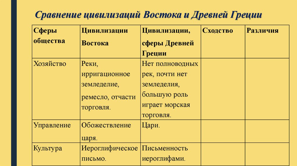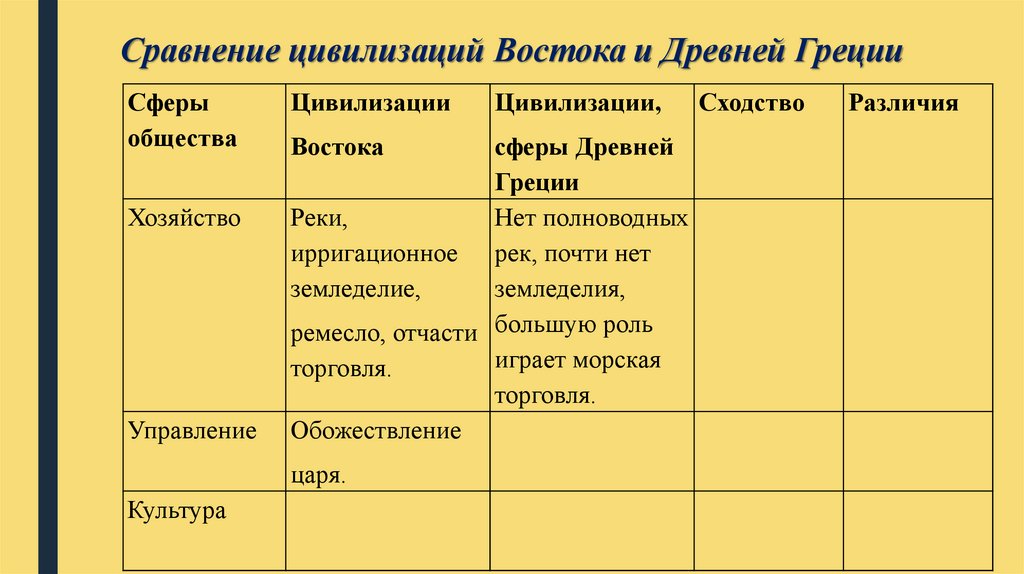 Сравнение цивилизаций Востока и Древней ГрецииСферы