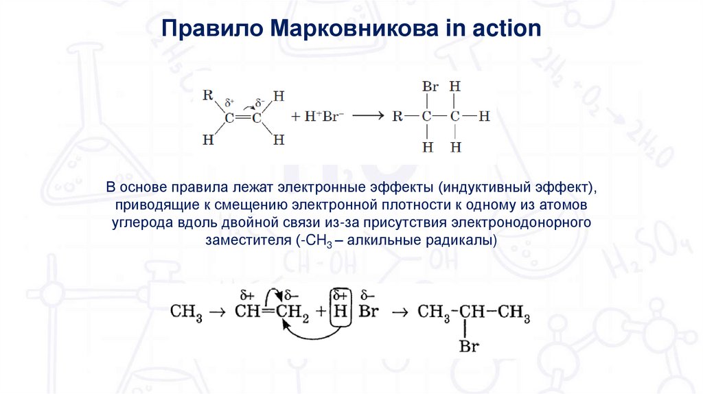 Правило Марковникова in actionВ основе правила лежат электронные эффекты (индуктивный эффект),