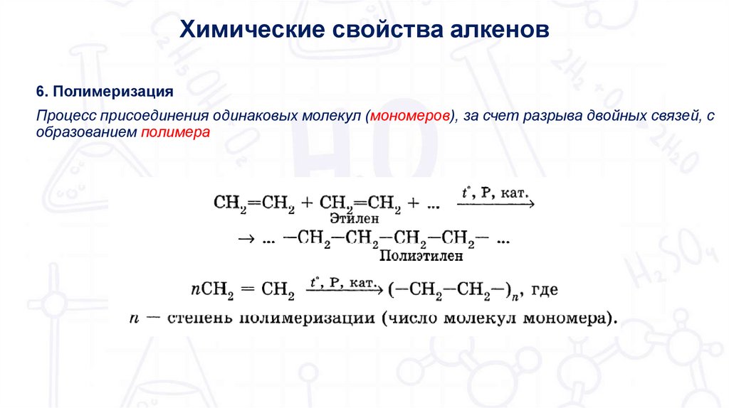 Процесс присоединения одинаковых молекул (мономеров), за счет разрыва двойных связей, с