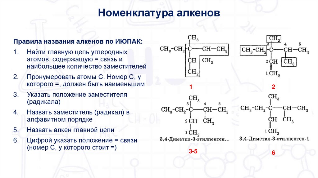 Номенклатура алкеновПравила названия алкенов по ИЮПАК: