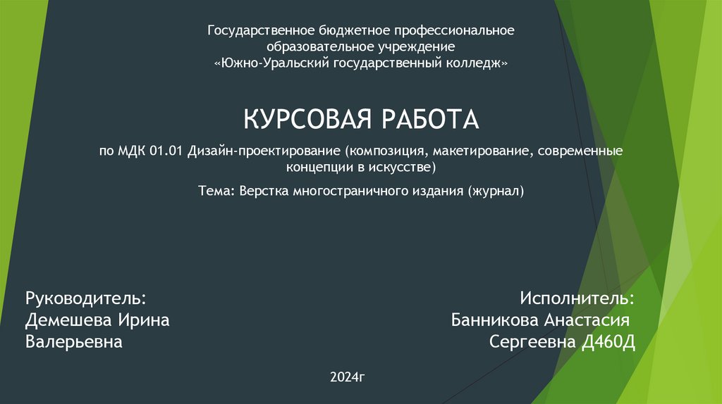 по МДК 01.01 Дизайн-проектирование (композиция, макетирование, современные