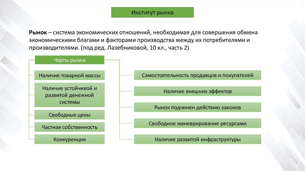 Институт рынкаРынок – система экономических отношений, необходимая для совершения обмена