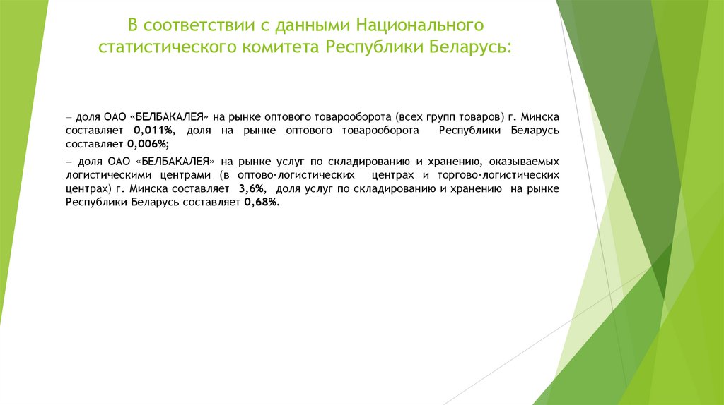 центрах) г. Минска составляет 3,6%, доля услуг по складированию и хранению на рынке