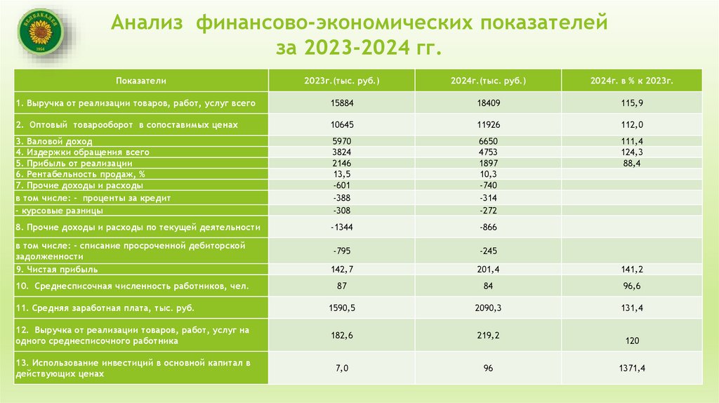 Анализ финансово-экономических показателейза 2023-2024 гг.