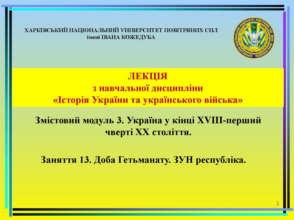Заняття 13. Доба Гетьманату. ЗУН республіка.